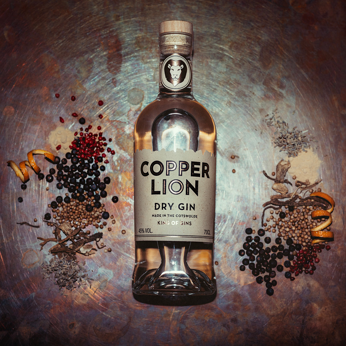 Each batch of our Copper Lion Dry Gin is crafted with ultimate care by Minnie in the heart of the Cotswolds. We make a very limited number of bottles at a time and each batch is carefully assessed for quality before bottling.